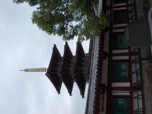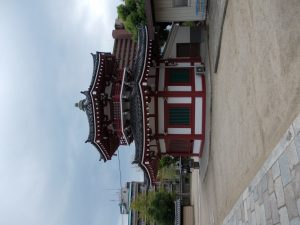 Before I left Osaka, I visited the Shitennoji Temple. This temple was founded in 593 by Prince Shotoku, who supported the introduction of Buddhism in Japan. You can also enter the pagoda and a large hall, the latter containing large Buddha statues, but photos are forbidden there.